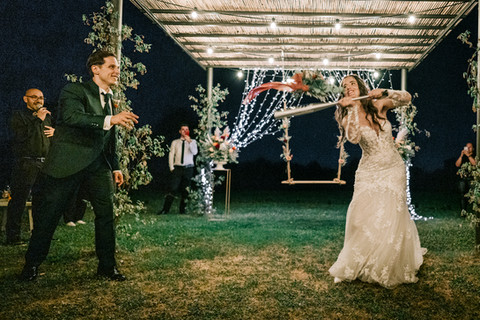 Dopo la cerimonia, la cena sotto le stelle ha reso l’atmosfera ancora più suggestiva: splendide tavolate, risate, brindisi e tanta gioia condivisa. E quando è arrivato il momento dei balli, Amanda e Alessandro hanno trascinato tutti in una festa scatenata, con energia e divertimento fino a tarda notte.